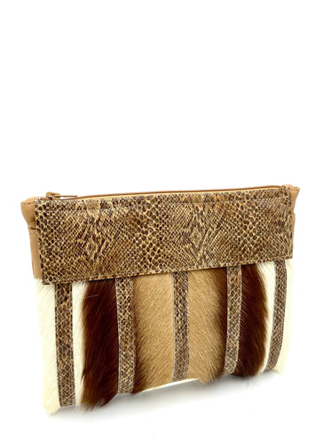 Sofia Clutch and Shoulder Bag - Black & White Cowhide