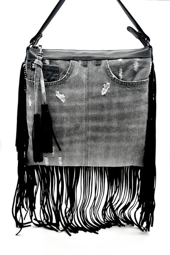All bags in the Denim Generation are made form repurposed designer jeans and finished with quality leather finishes and hardware.