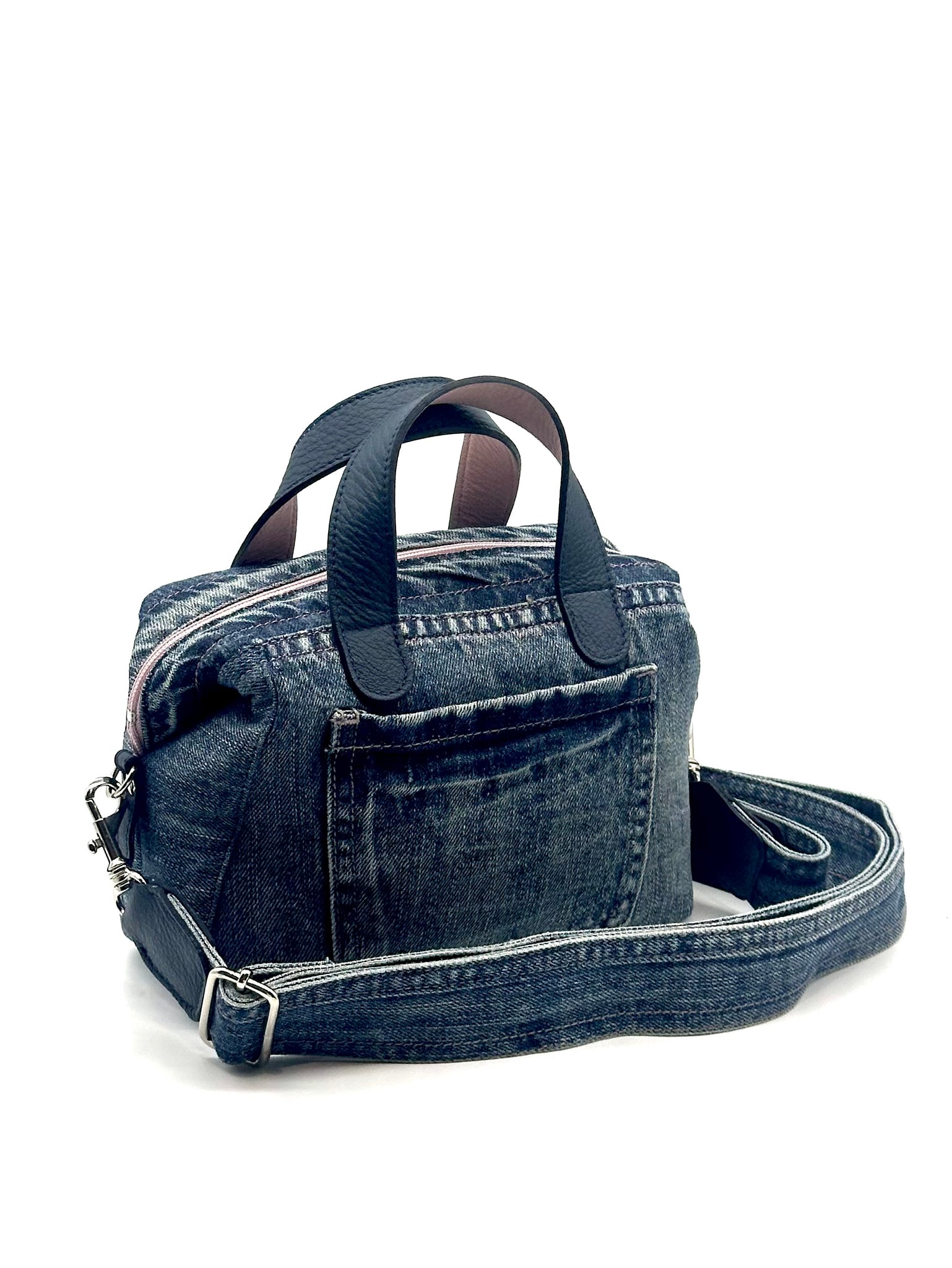 This extra small tote is surprisingly spacious. Just like our leather Gracie… but denim! Carry in your hand with the double handles, on your shoulder or across the body. A sweet addition to any outfit. Like all styles in our Denim Generation range, Gracie denim is made form repurposed designer jeans and finished with quality leather trims.