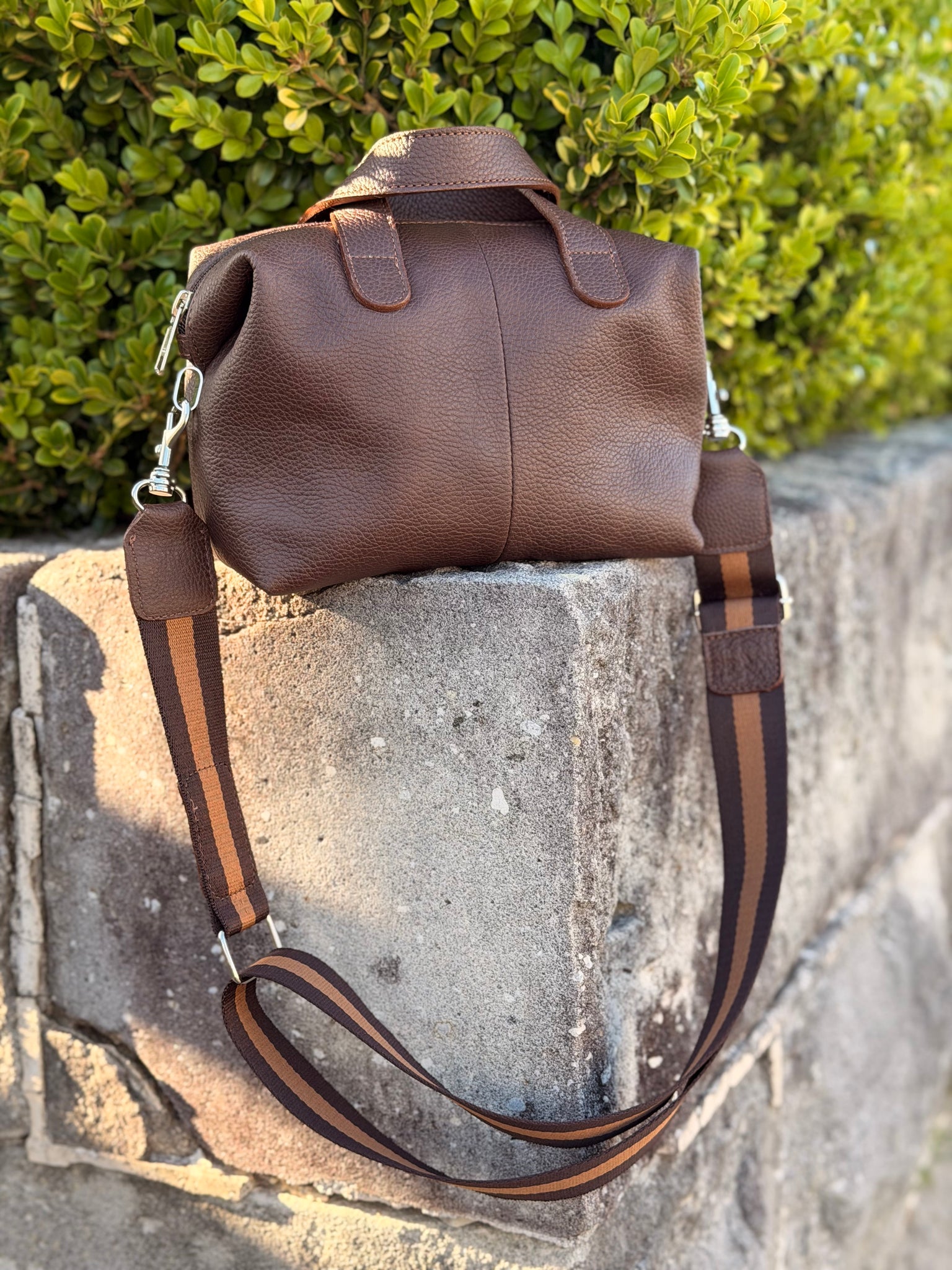 This extra small tote is surprisingly spacious. Carry in your hand with the double handles, on your shoulder or across the body with the adjustable webbing handle. A sweet addition to any outfit.